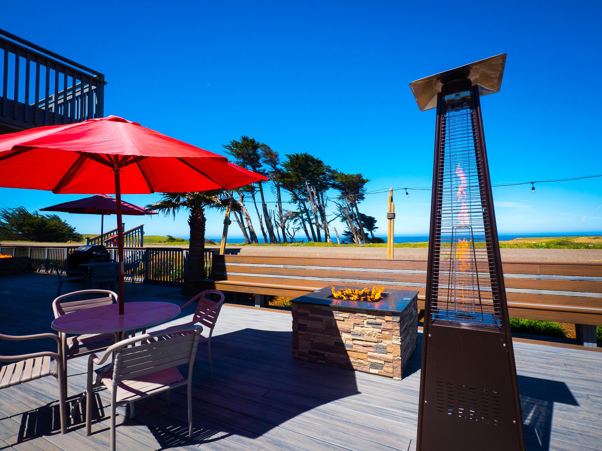 - Direct access to Mate's deck with firepits and heaters